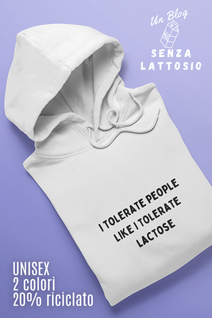 Felpa Minimal “I Tolerate People Like I Tolerate Lactose” – Design di Sara di Un Blog Senza Lattosio